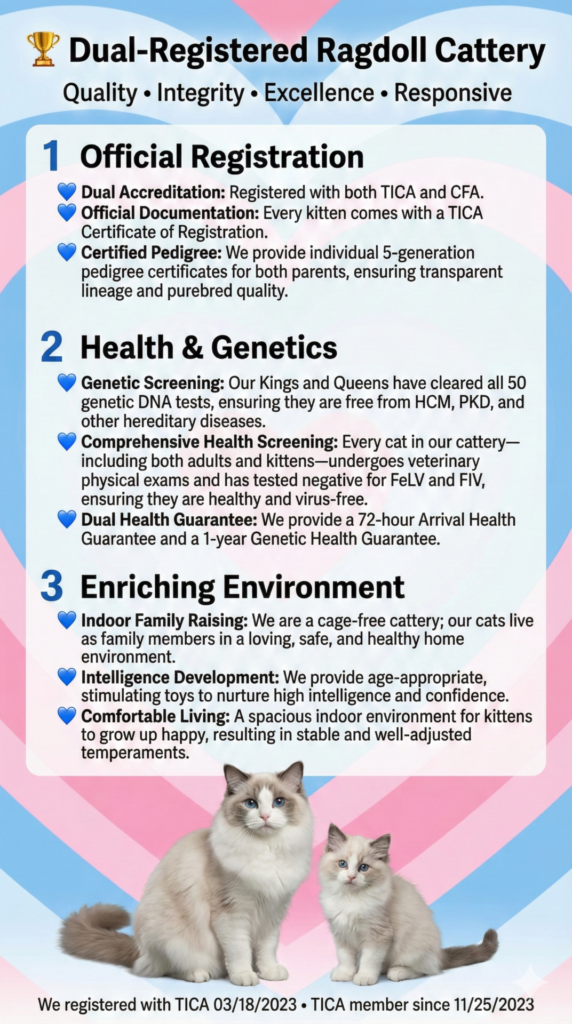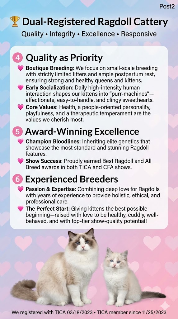 I’ve taken her on trips and she never gets scared. She is always so brave and curious about the world around her. She comes running when I call her name, tail straight up like a little puppy. Sometimes Joy will jump up next to me, curl up by my side and start purring like a tiny engine. That melt my heart every time. We are so in love with Joy, and all of our friends who’ve met her are completely in love. She’s also great with other cats and has blended in wonderfully with our home. I’m so grateful to have found. BeHappyRagdoll!